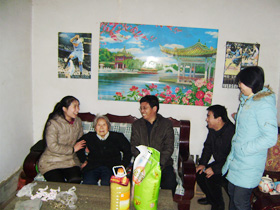 张洪涛的母亲看上去特别面善,精神也非常好,她看到我们非常高兴,热情的招待了我们。庞友民、程英谦经理向她询问了生活情况并提醒老人多注意身体。
